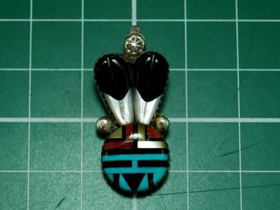 シルバーと石を巧みに組み合わせた立体的なデザインはサンフェイス(太陽神)を表しています。